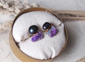 素材:ブラックパール・スギライト・K14ゴールドフィルド(ピアス金具)・合成漆・真鍮粉