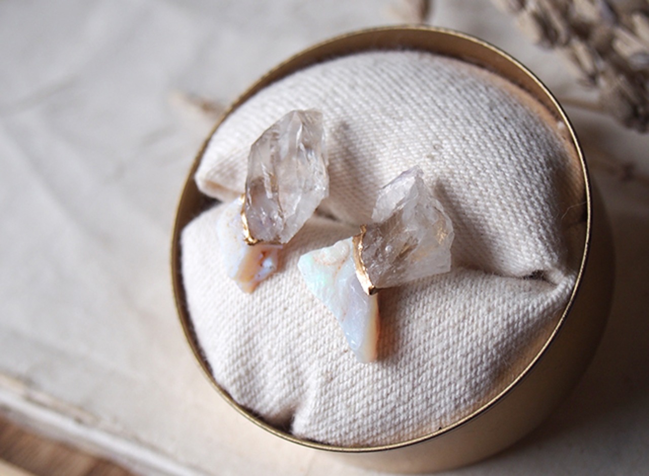 【一点物】原石のクォーツ・オパールの金継ぎピアス