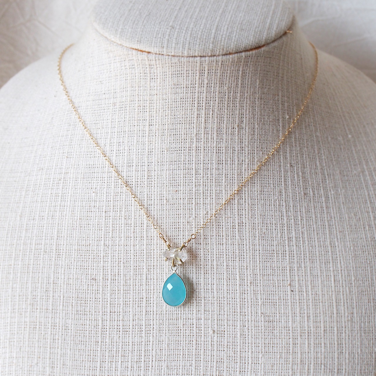 原石のダイヤモンドクォーツとカルセドニーのネックレス w970