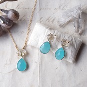 高い透明度と強い輝きが美しいダイヤモンドクォーツと、鮮やかなブルーのカルセドニー。