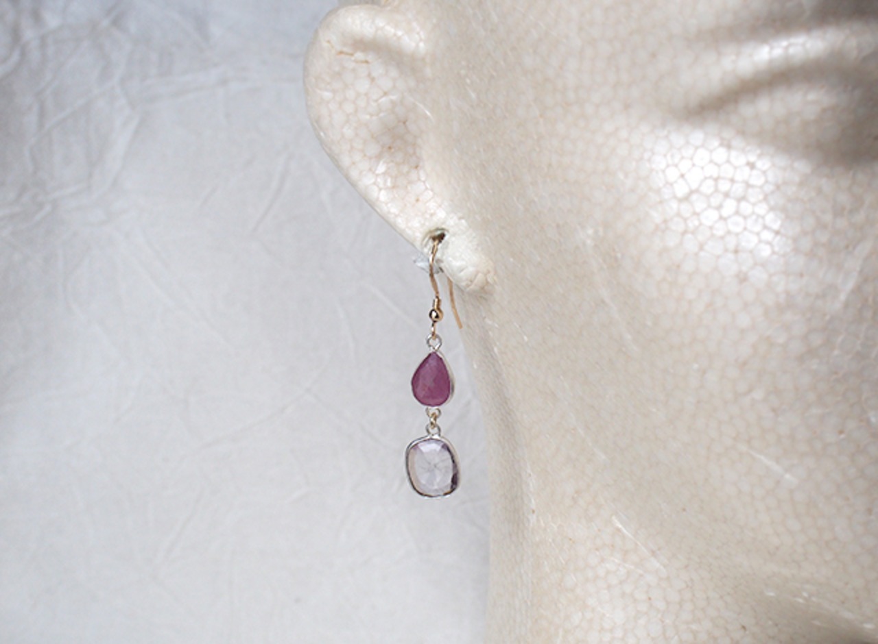 ルビーとアメジストのピアス w1003
