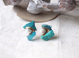 【一点物】原石のクリソコラ・アパタイト・パールの金継ぎピアス