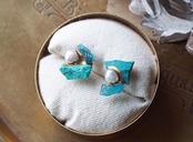 原石のクリソコラ・アパタイト・パールの金継ぎピアス wo231