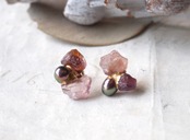 原石のローズクォーツ・ルビー・パールの金継ぎピアス wo232