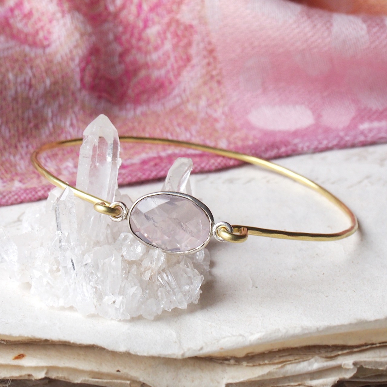 重ね着けバングル-ローズクォーツ・トルマリン・パール
