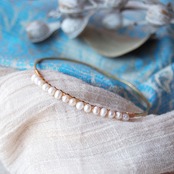 にじむ様なバラ色のローズクォーツと、オリエンタルなピンクトルマリン、上品な輝きのパールのバングル。