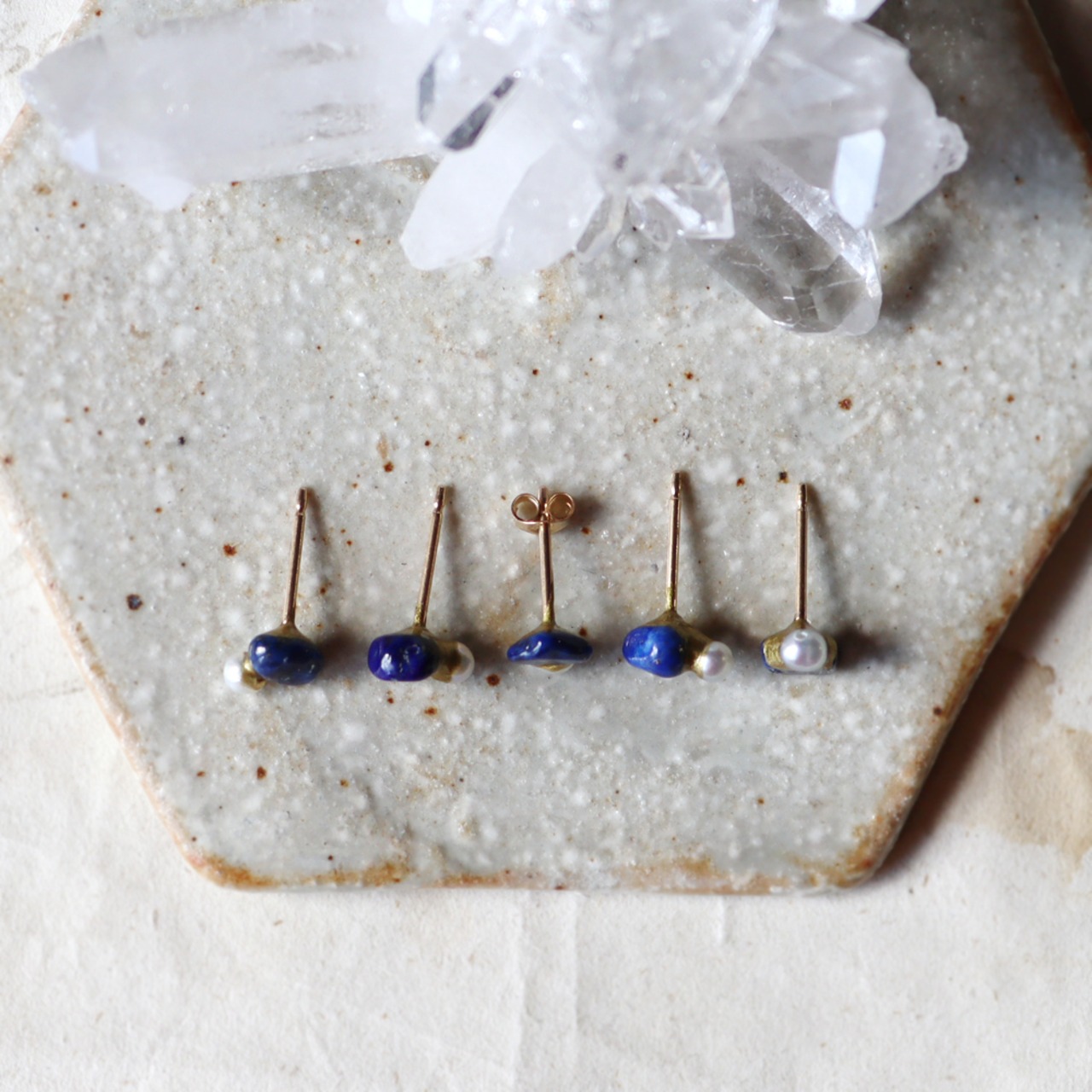 ラピスラズリとパールの金継ぎプチピアス(1個/片方)