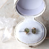 原石グリーンガーネットとパールの金継ぎプチピアス(1個/片方)