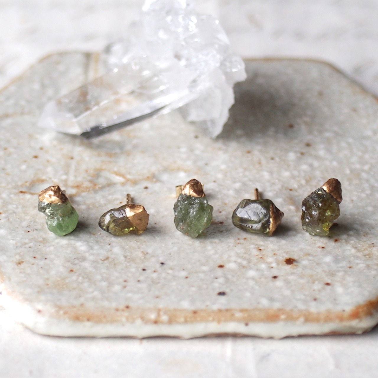 原石グリーンガーネットの金継ぎプチピアス w1027