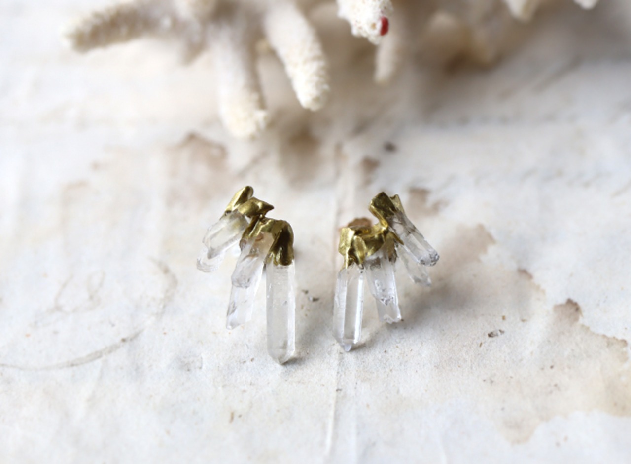 原石クォーツの金継ぎピアス