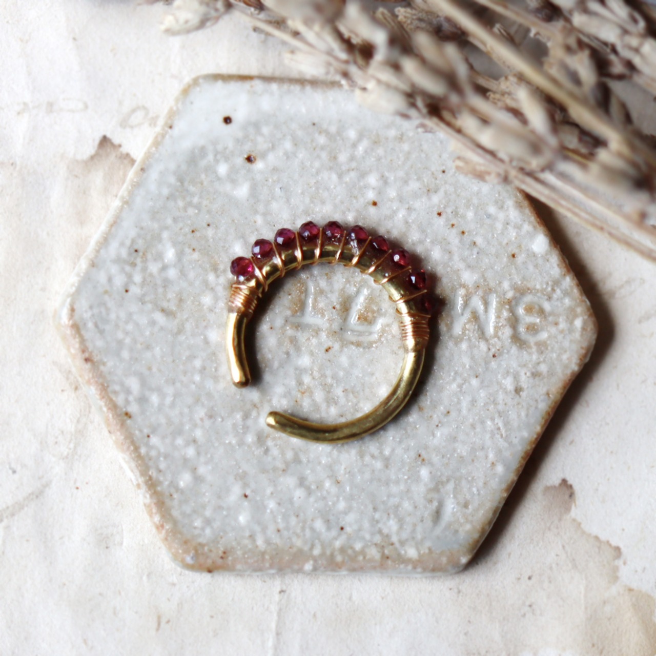 リングの隙間を耳に通してイヤーカフとして、ぶら下がりパーツを付けて3wayでもお使いいただけます。