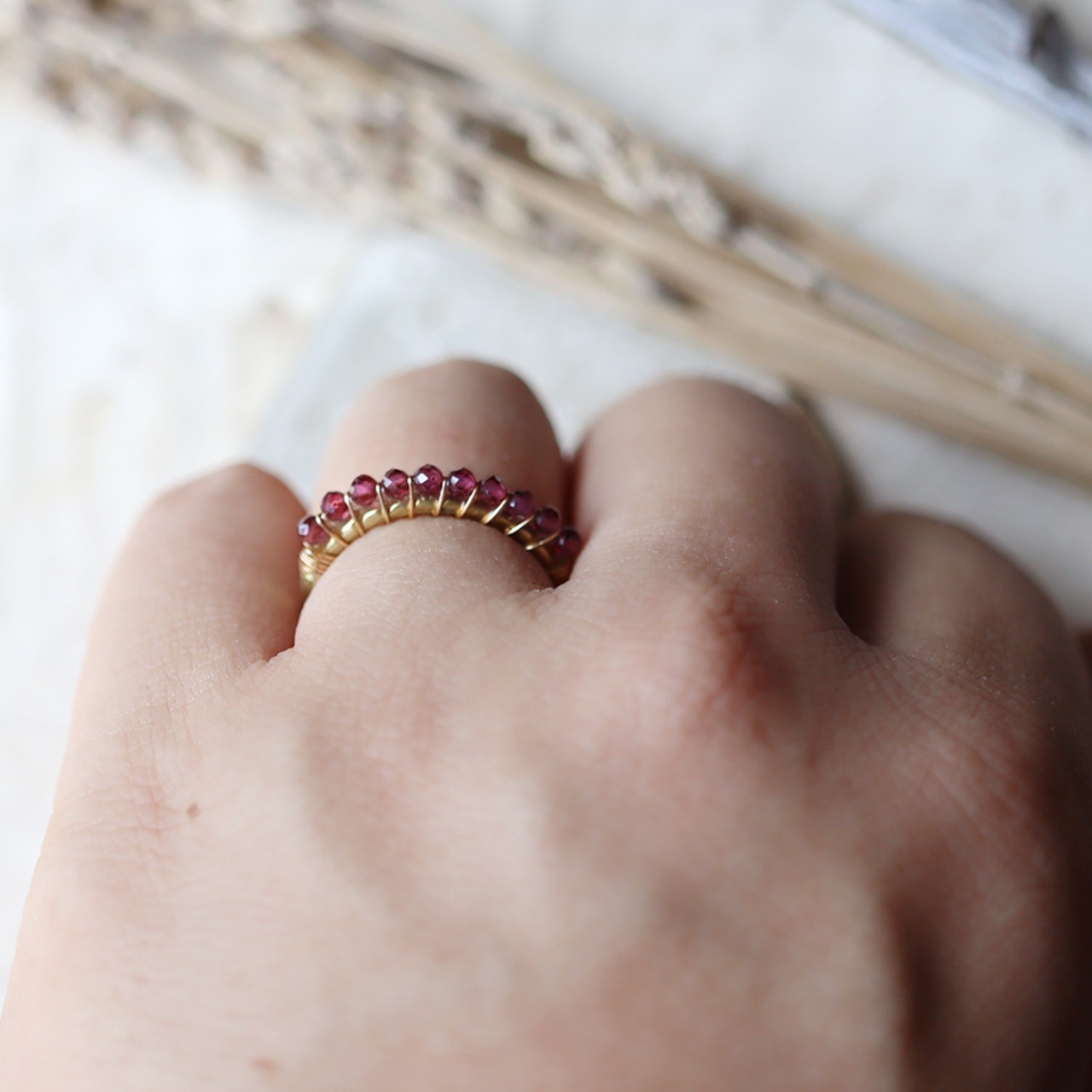 多くの色や種類のあるガーネットの中で、ロードライトガーネットは「アルマンディン」と「パイロープ」の中間種。ギリシャ語で「バラ色の石」という意味を持ち、紫がかった赤色が特徴です。