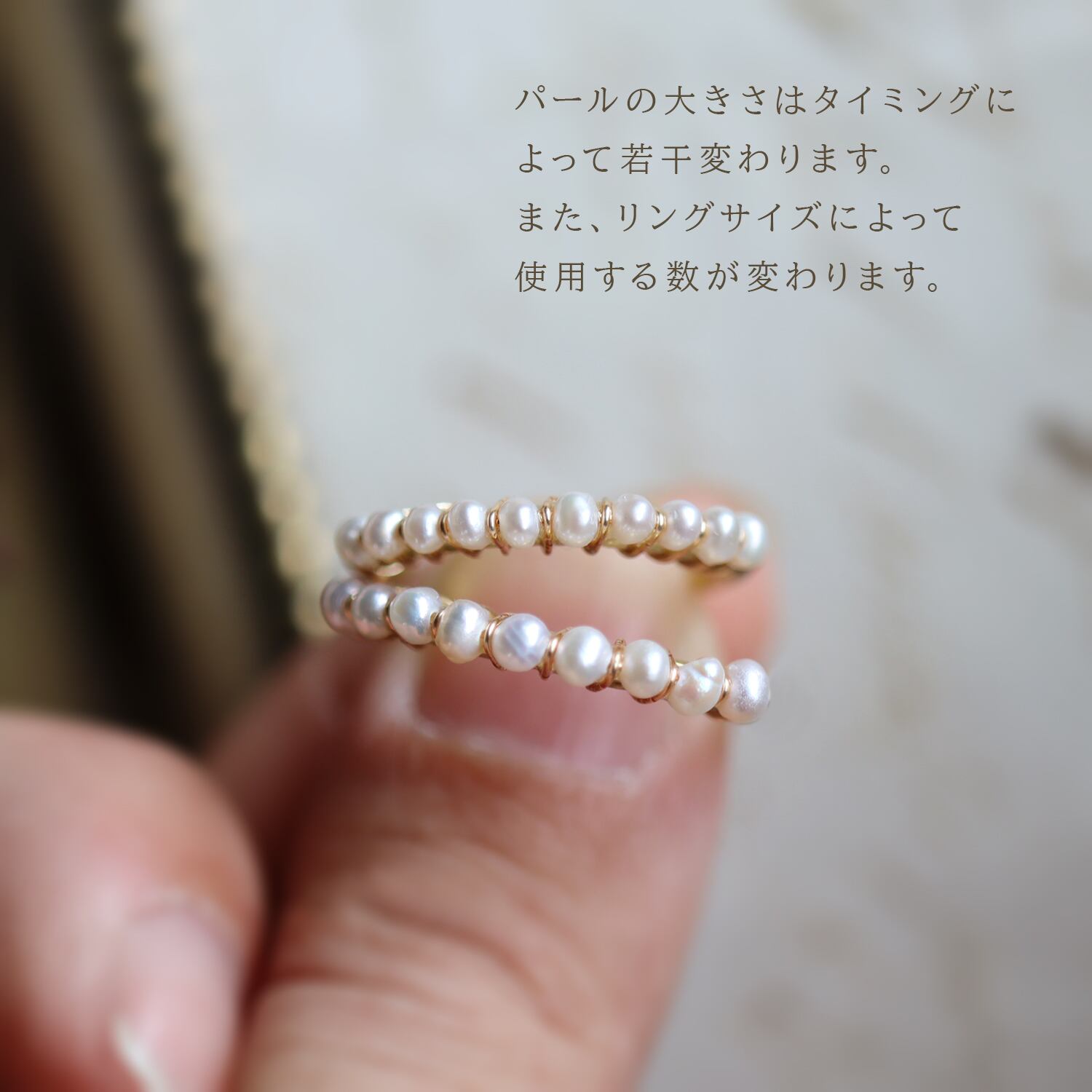 重ね着けリング/イヤーカフ 真鍮つちめ幅広・ベビーパール