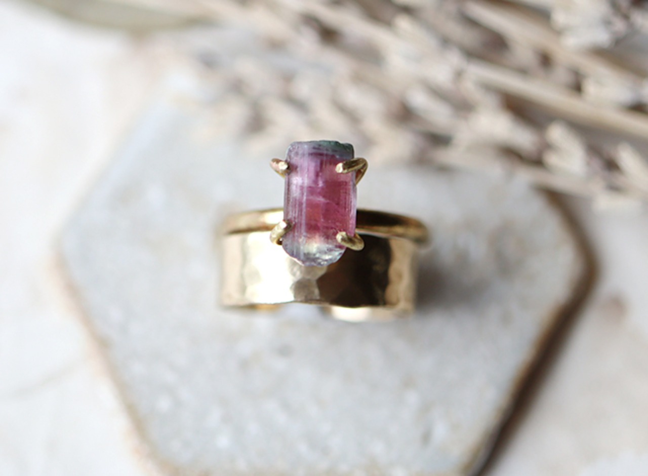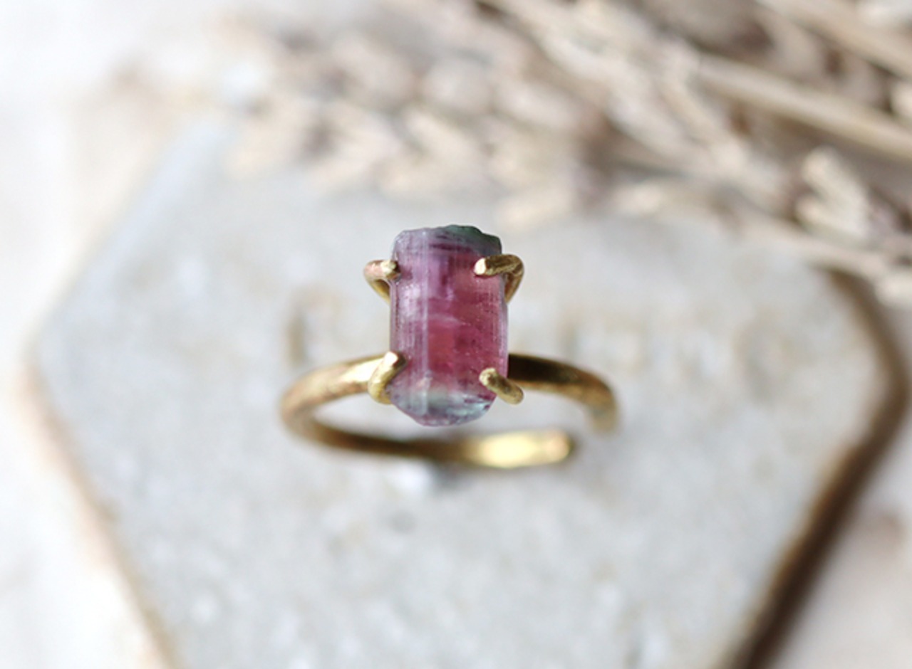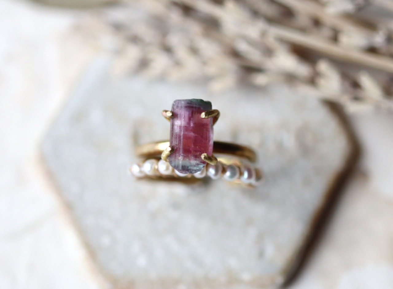 【一点物】原石ウォーターメロントルマリンのイヤーカフ/リング
