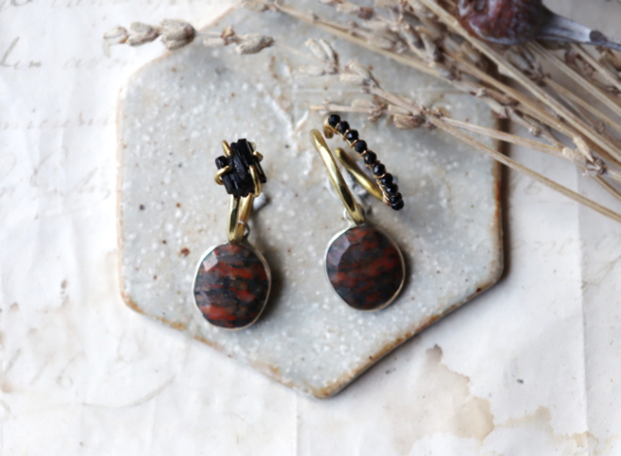 柱状の結晶が残るシックなブラックトルマリンのイヤーカフ。