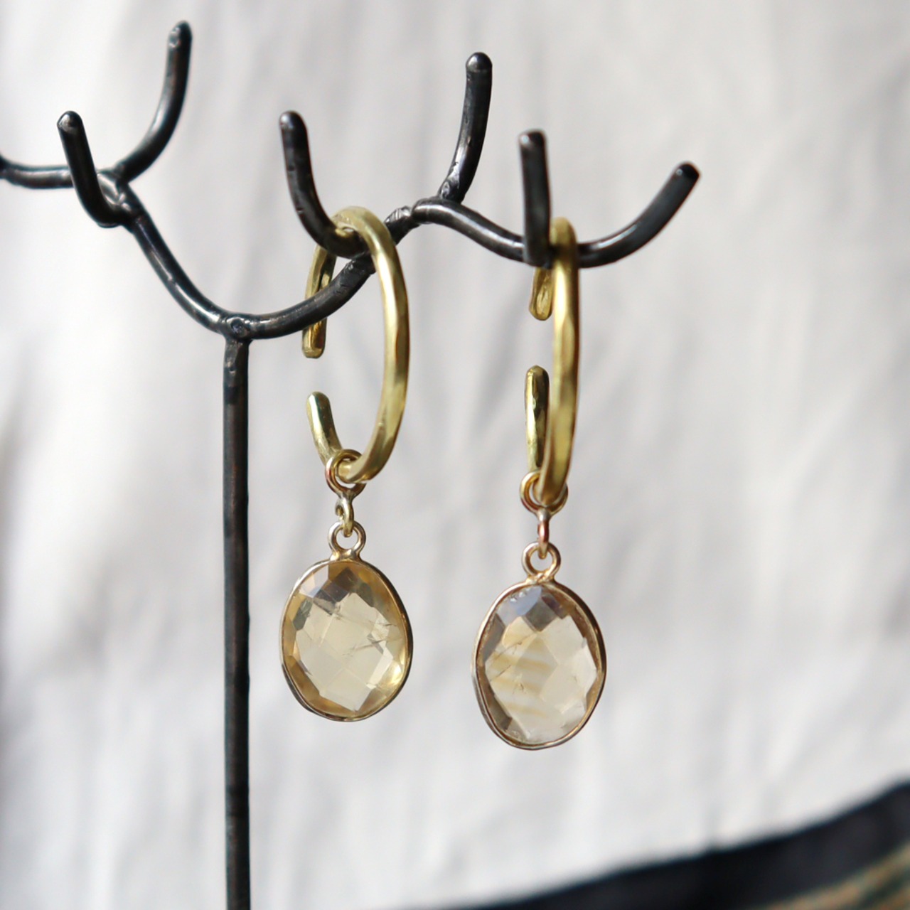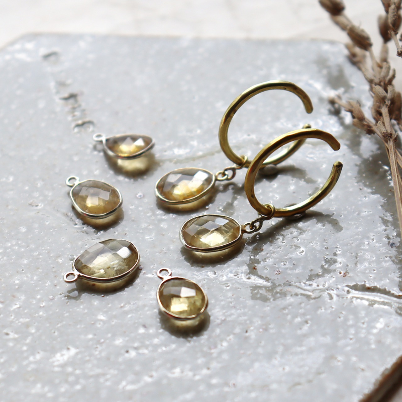シトリンのぶら下がりイヤーカフ