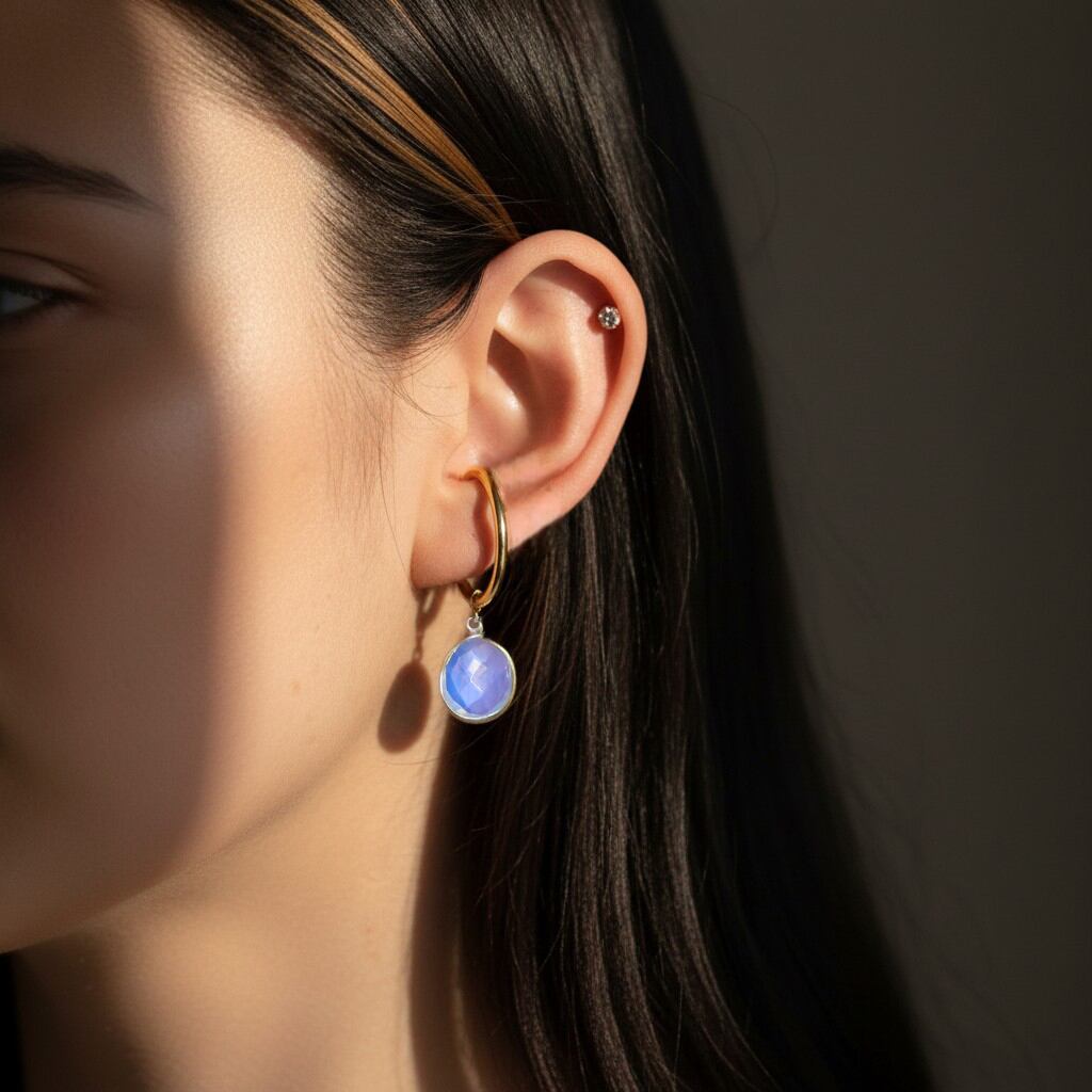 オパライトのぶら下がりイヤーカフ