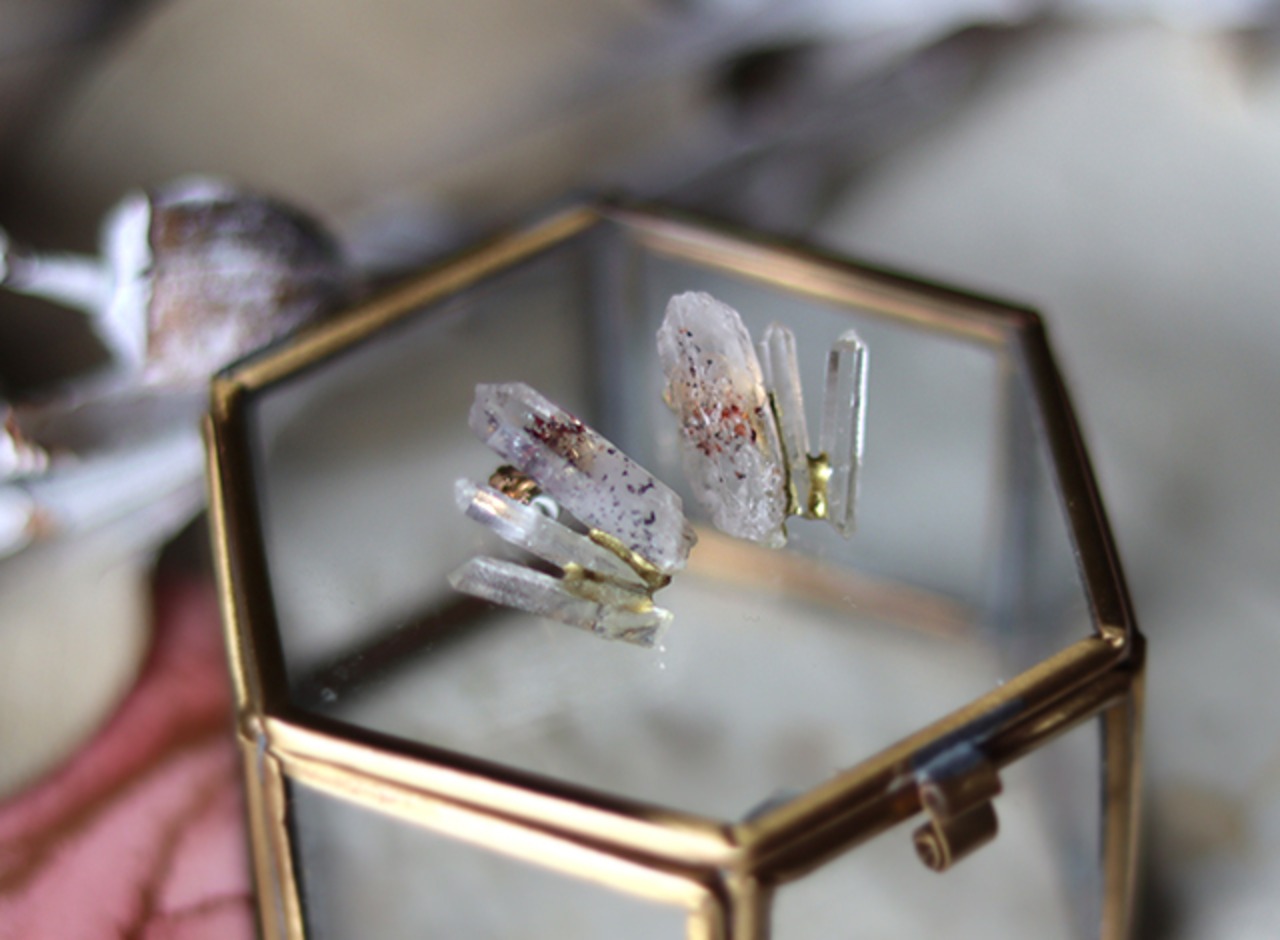 クォーツ結晶と合わせて、それぞれの石の個性を金継ぎでまとめました。