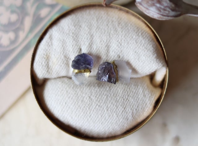 【一点物】原石アイオライトとムーンストーンの金継ぎピアス