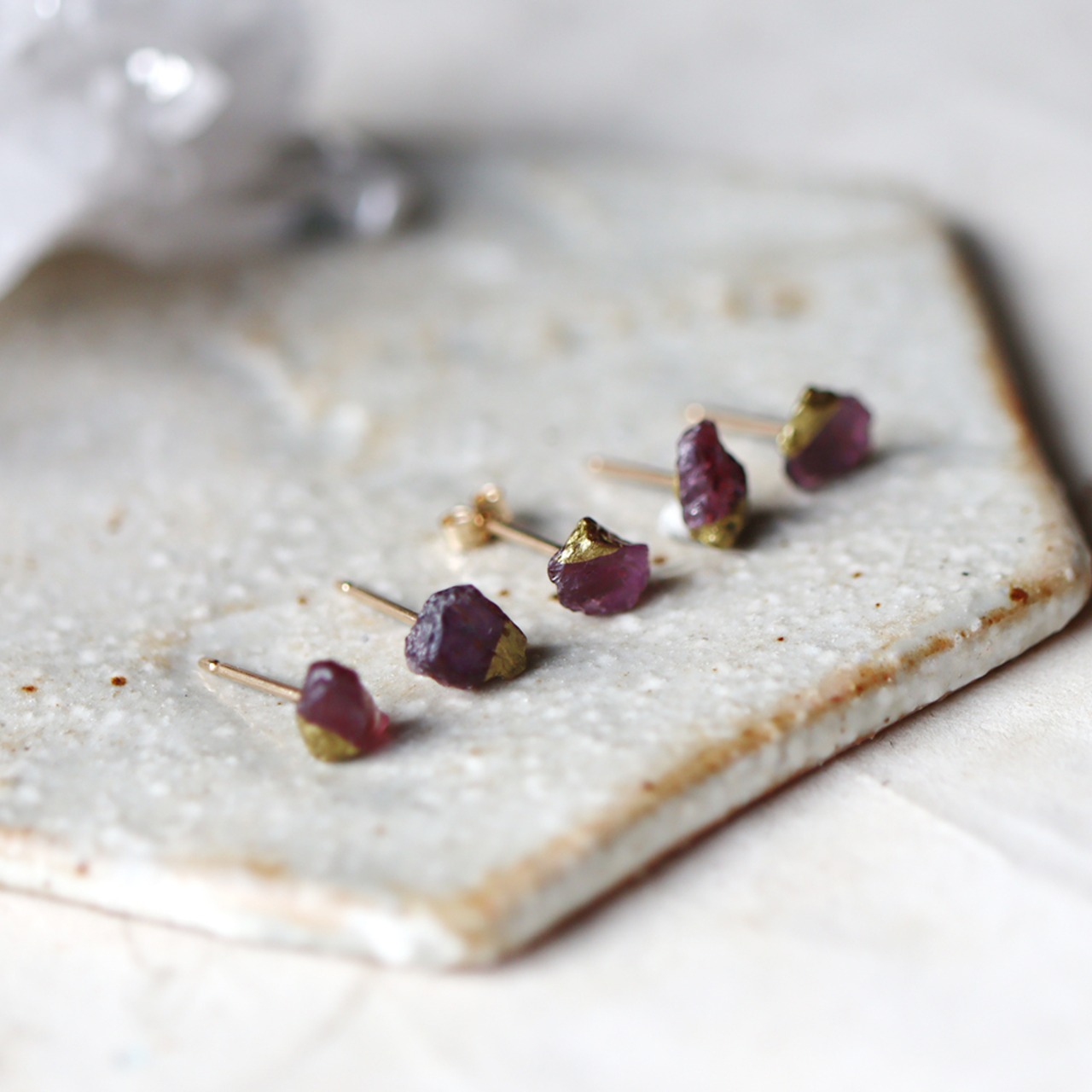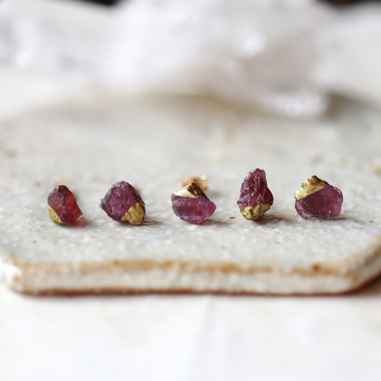原石ルビーの金継ぎプチピアス(1個/片方)