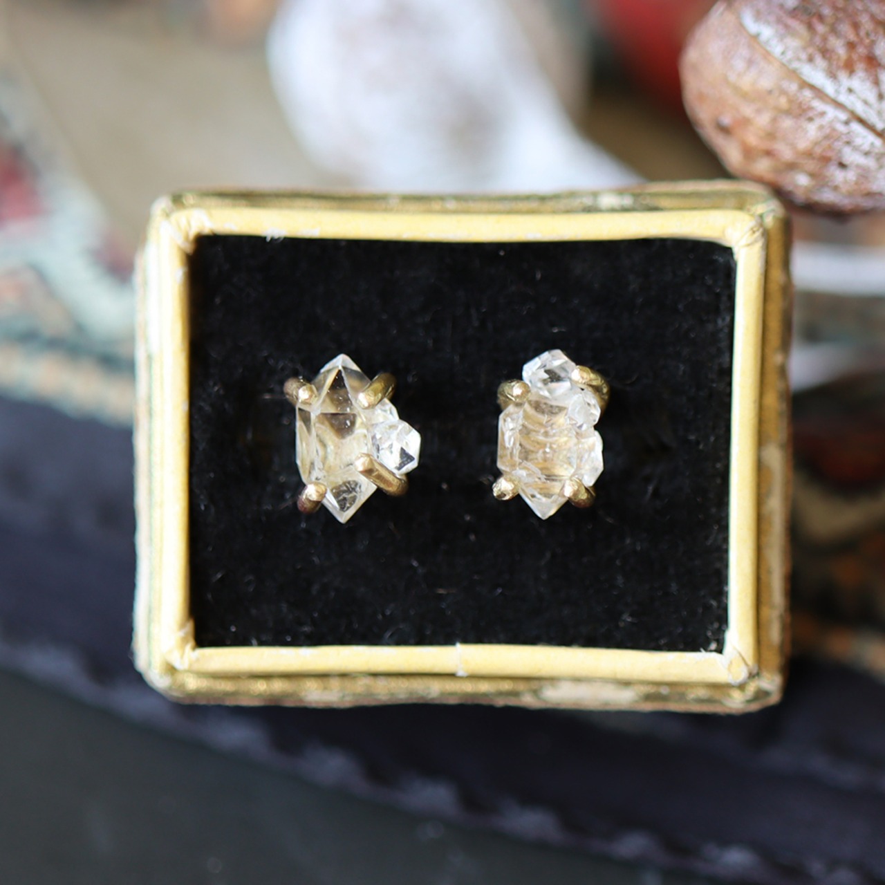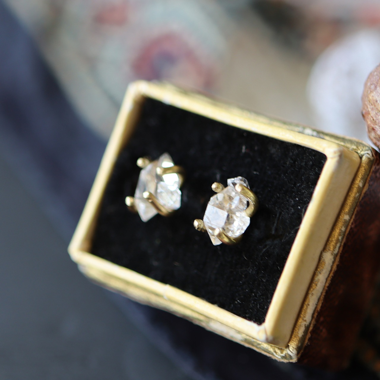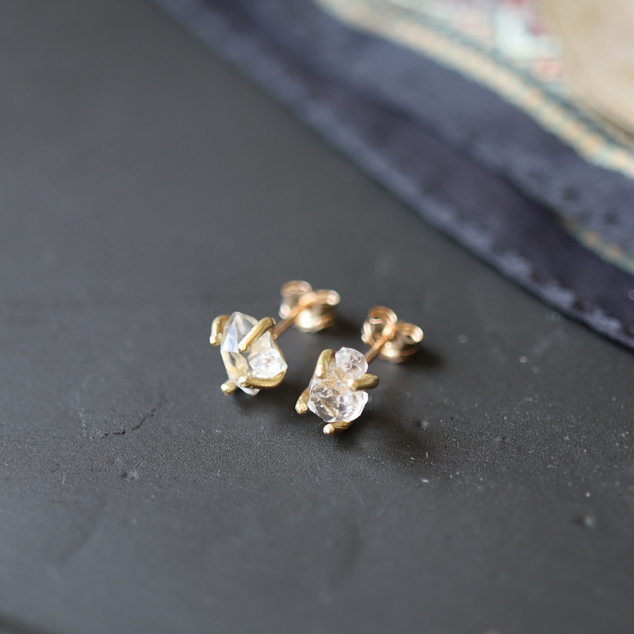 【一点物】双子の原石ダイヤモンドクォーツのピアス