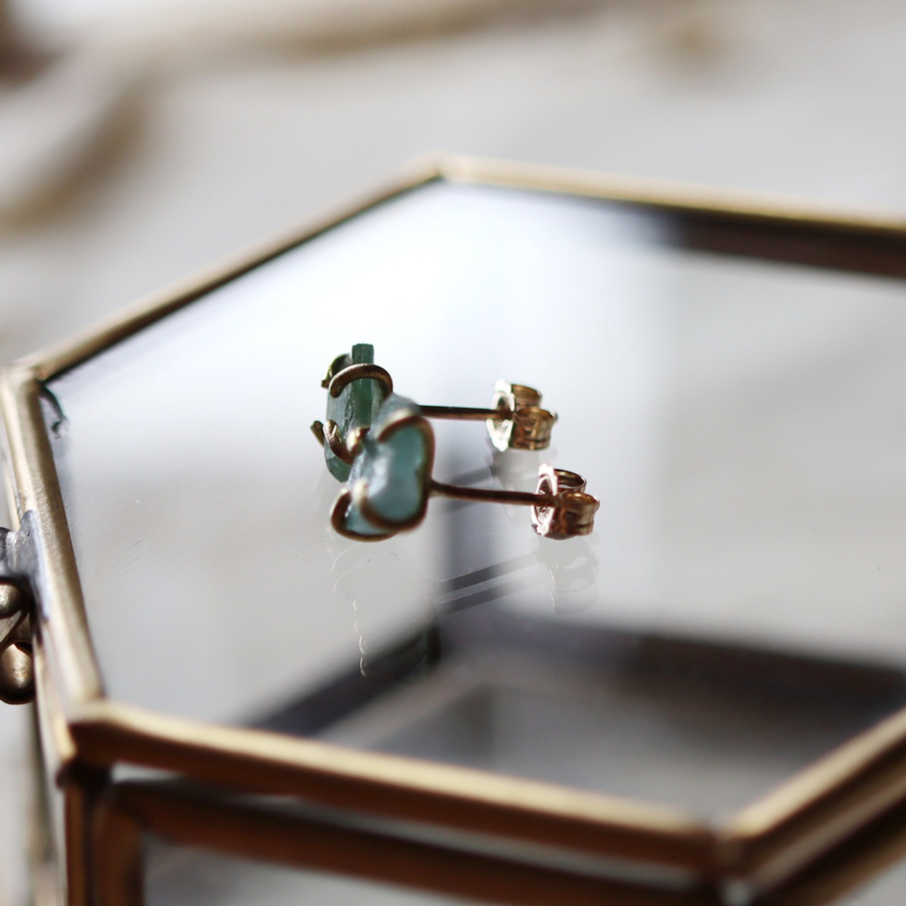 自然な形をそのままに4本の爪で留めて、シンプルなワンポイントピアスにしました。