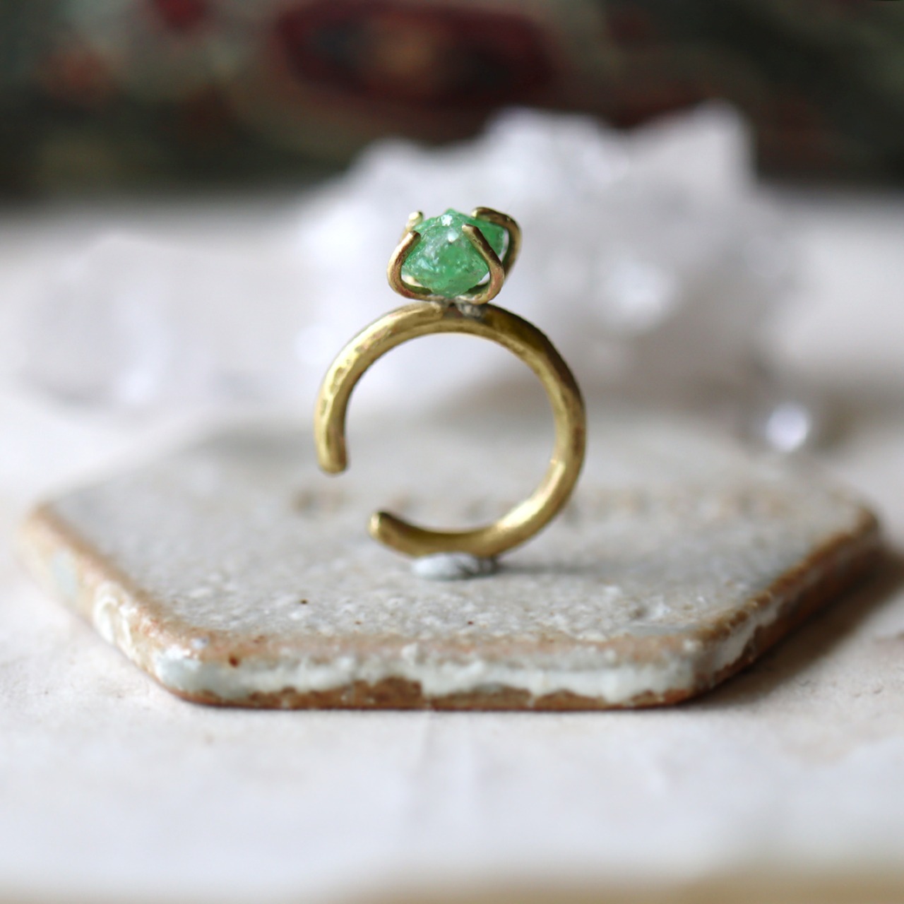 原石を真鍮の4本爪でシンプルに留めた、ベビーリングのようなイヤーカフです。