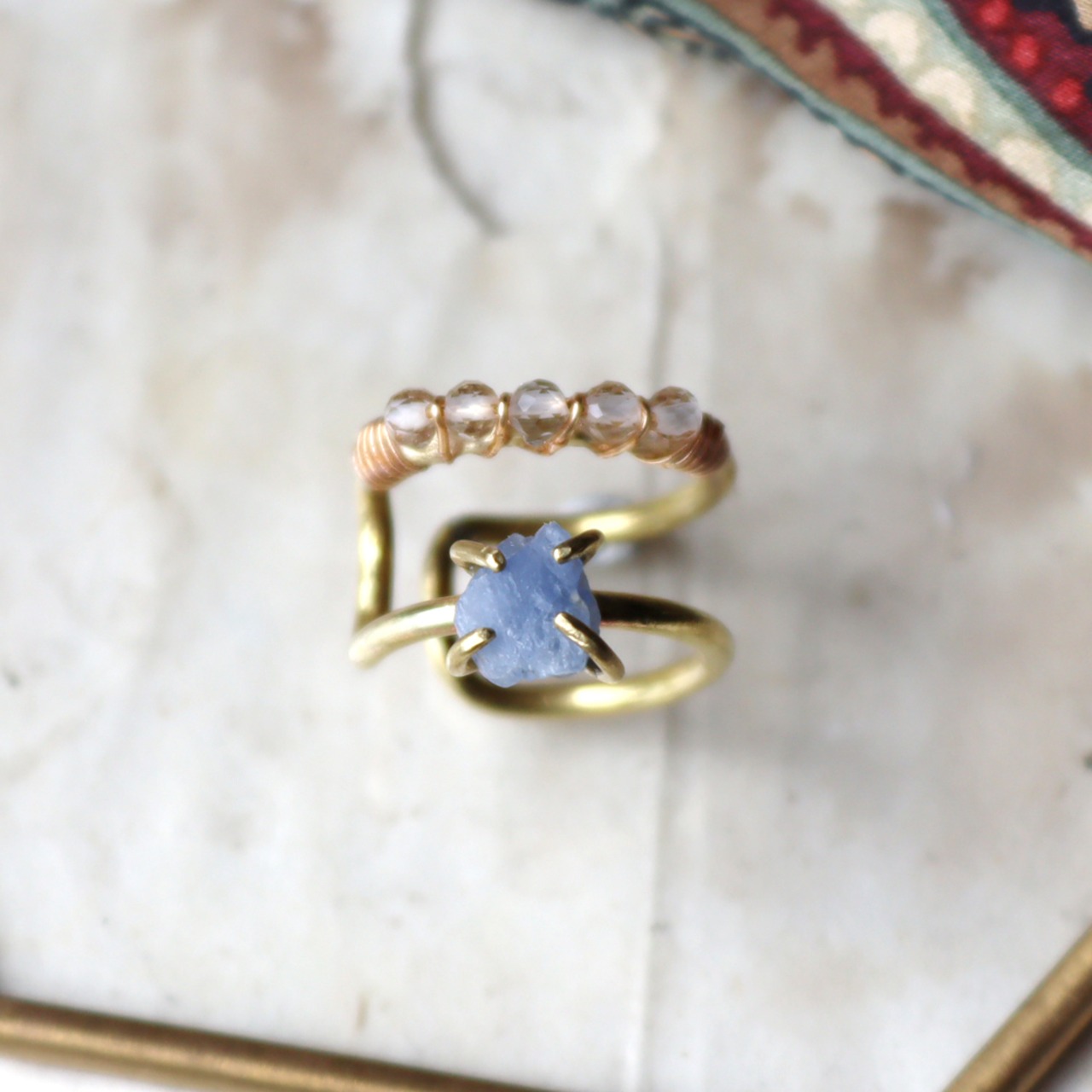 原石サファイアとクォーツの2連イヤーカフ