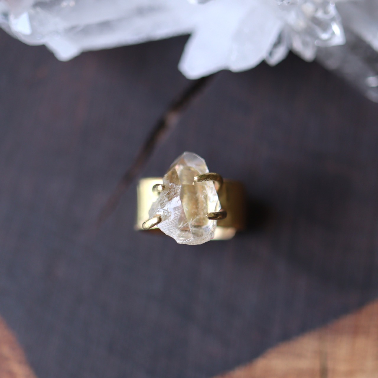 原石ダイヤモンドクォーツの幅広イヤーカフ won51a