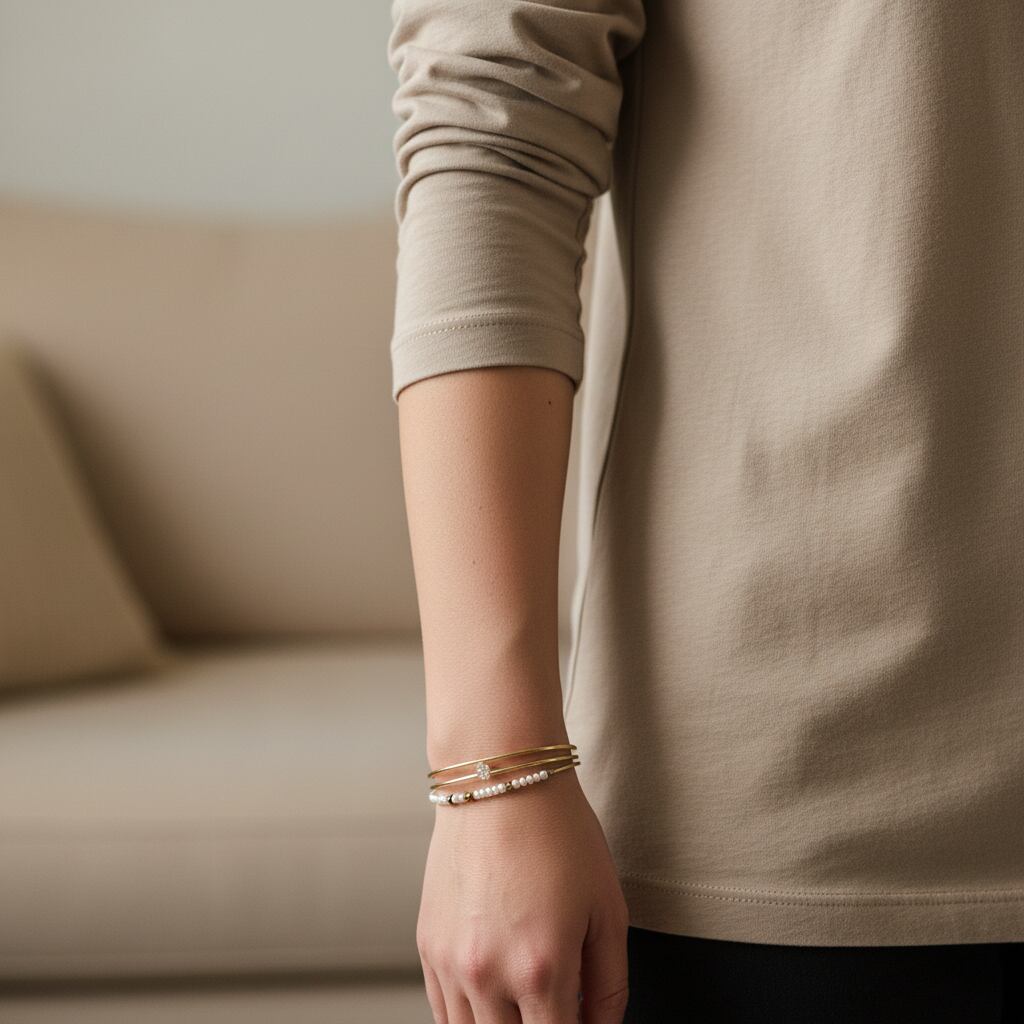 毎日の服装に、こなれ感とさり気ない華やかさをプラスしてくれるバングルです。
