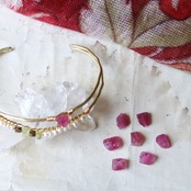 原石トルマリン・グリーンガーネットの2連バングル w1105