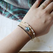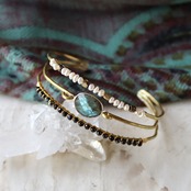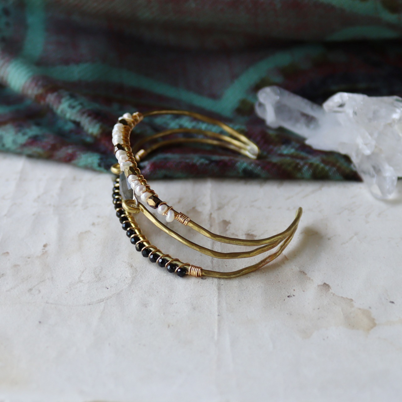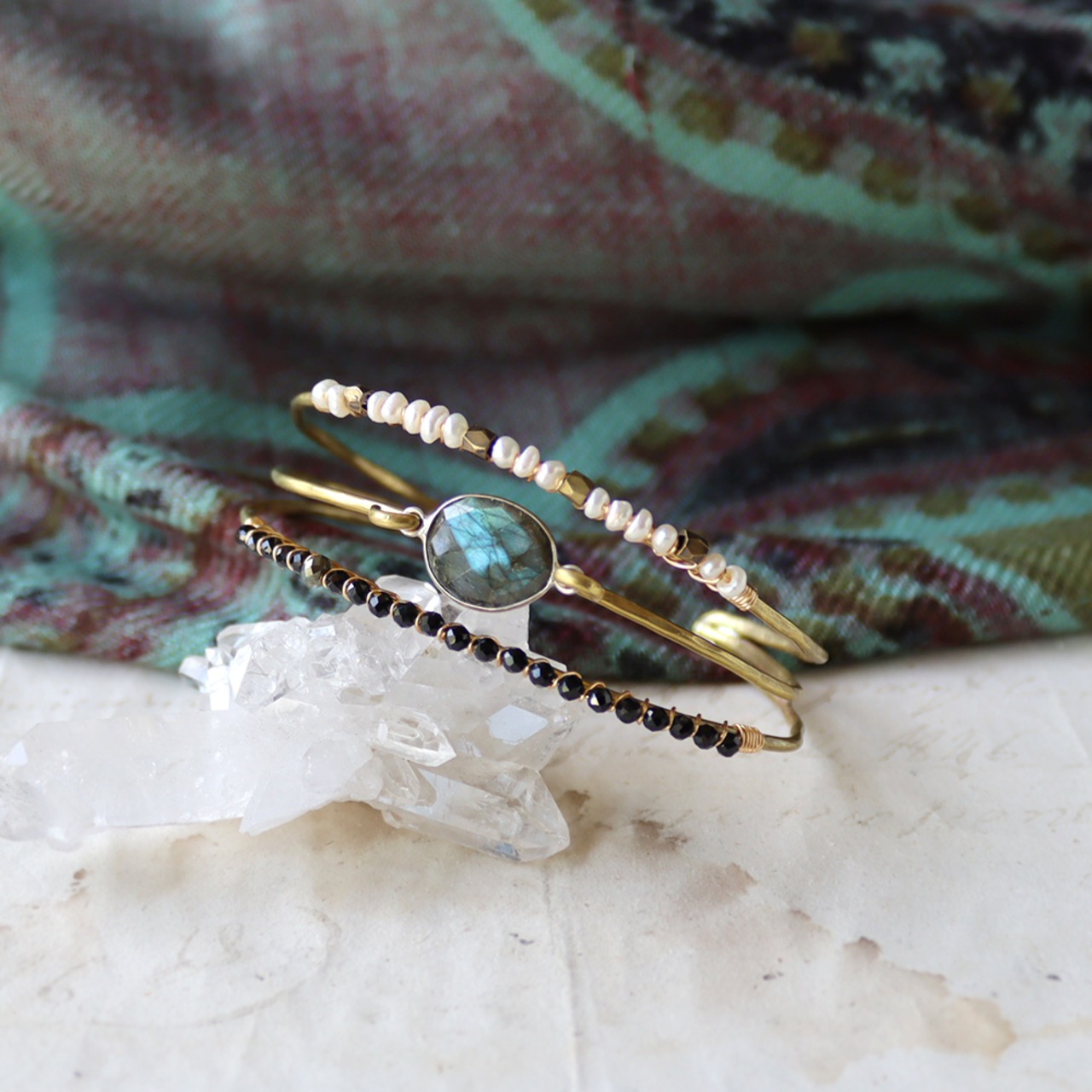 ラブラドライト・ブラックスピネル・パールの3連バングル
