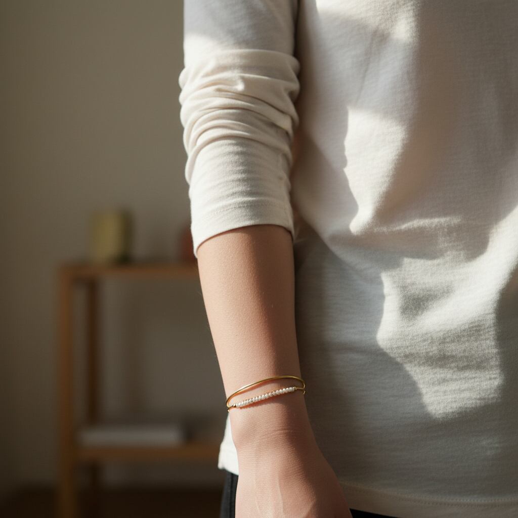 繊細な輝きが手首を華奢に華やかに見せてくれる2連のバングルです。