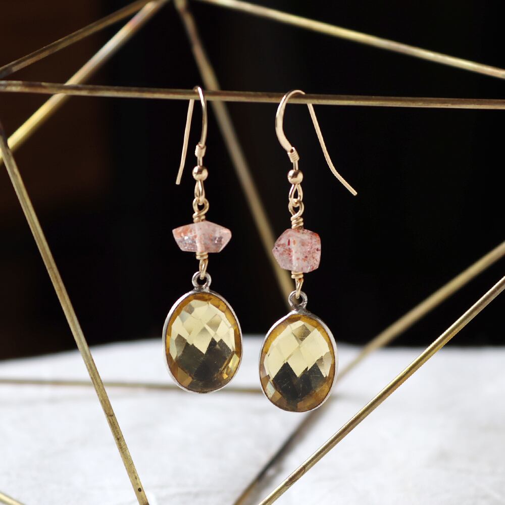 素材:サンストーン・シトリン・シルバー(石枠)・K14ゴールドフィルド(ピアス金具)