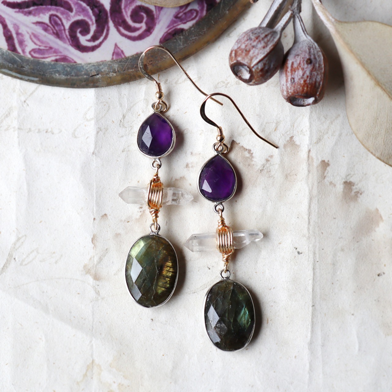 アメジスト・クォーツ・ラブラドライトのピアス