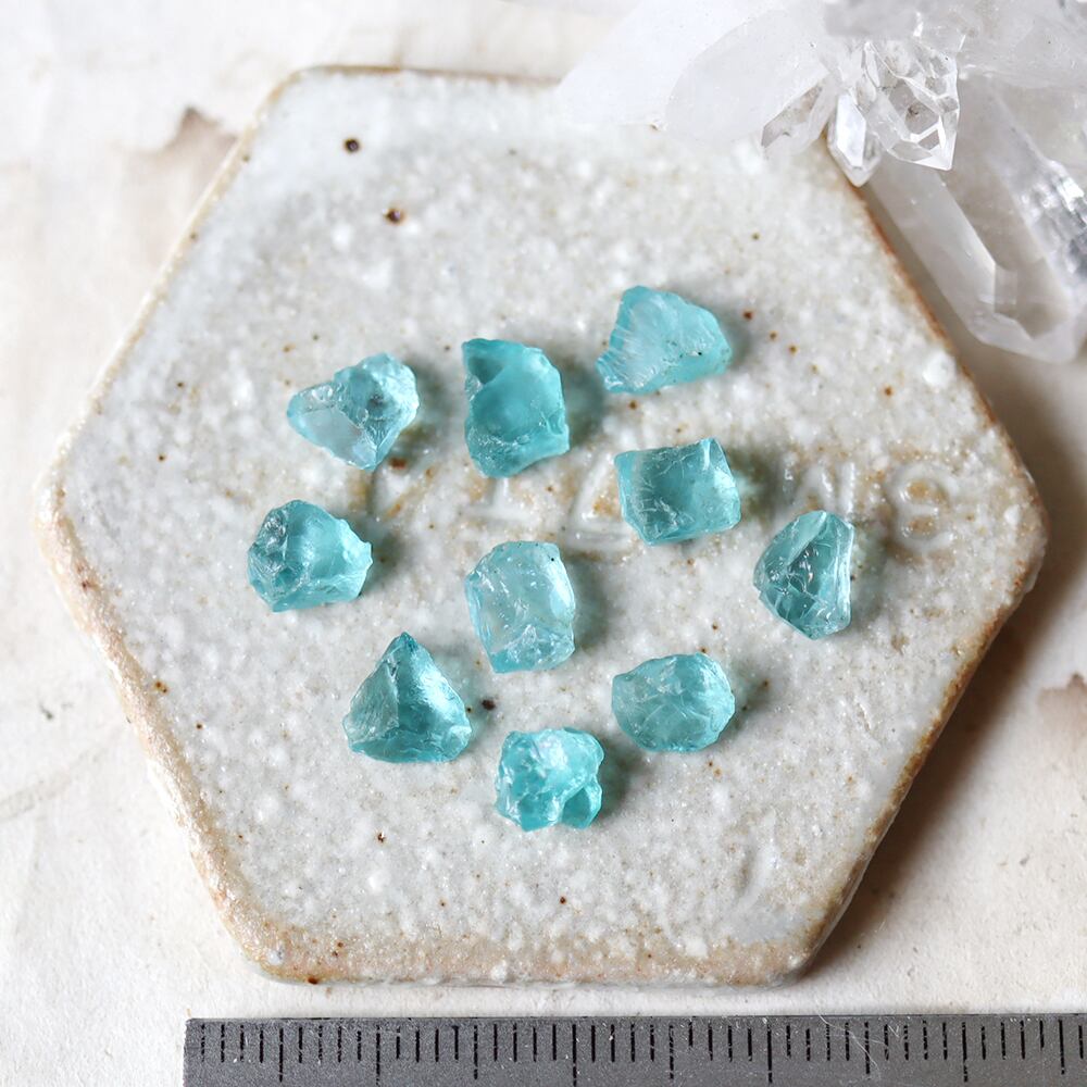 サンゴ礁の海のような、うるうると輝くネオンブルーが美しいアパタイト。