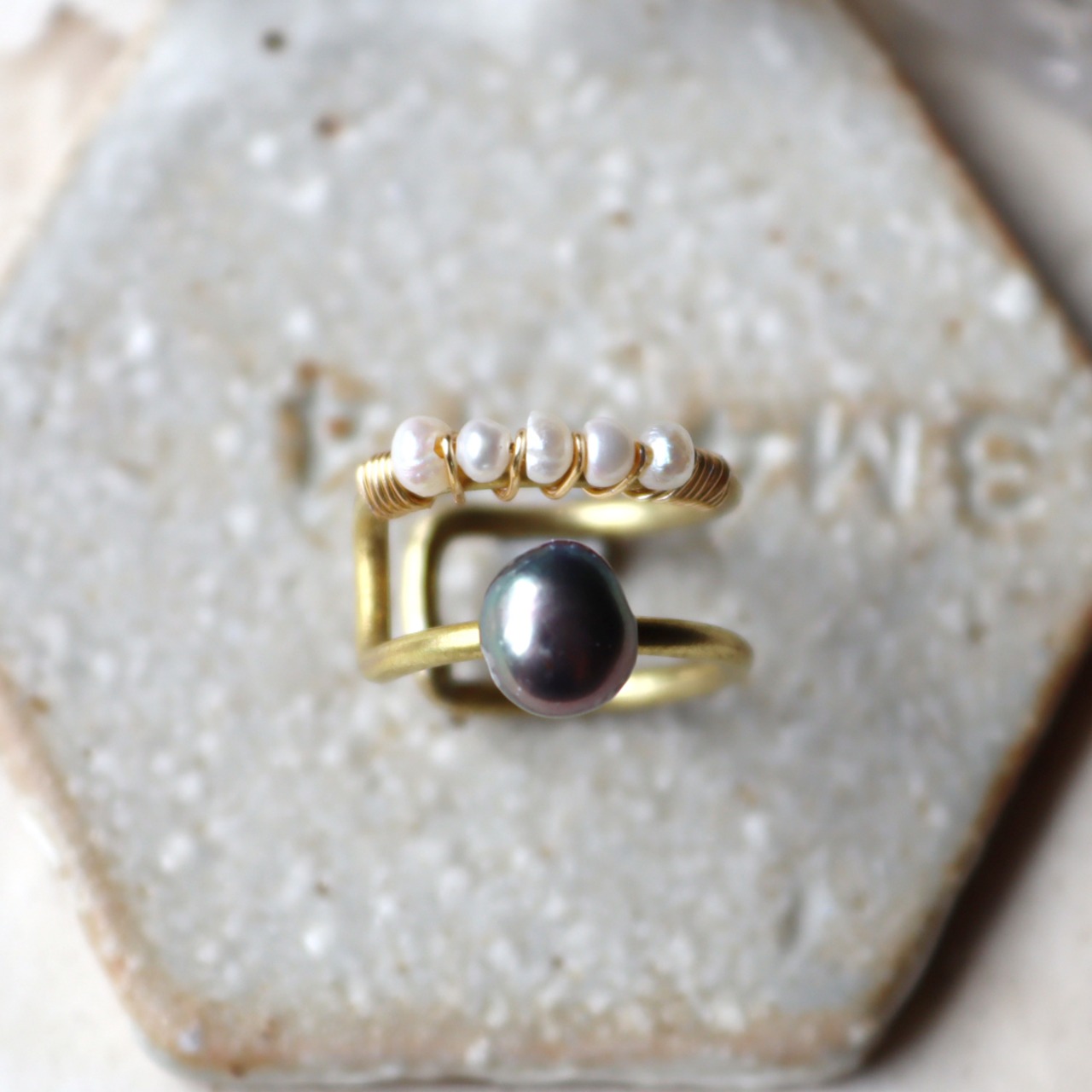※グレーパールには小さな穴が空いています。目立たないように石留めしますが、予めご了承ください。