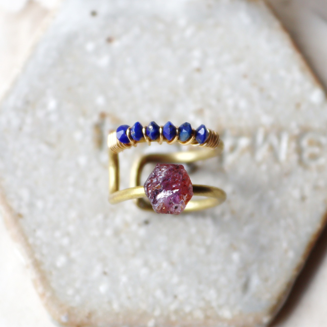 原石は真鍮の4本爪でシンプルに留めます。