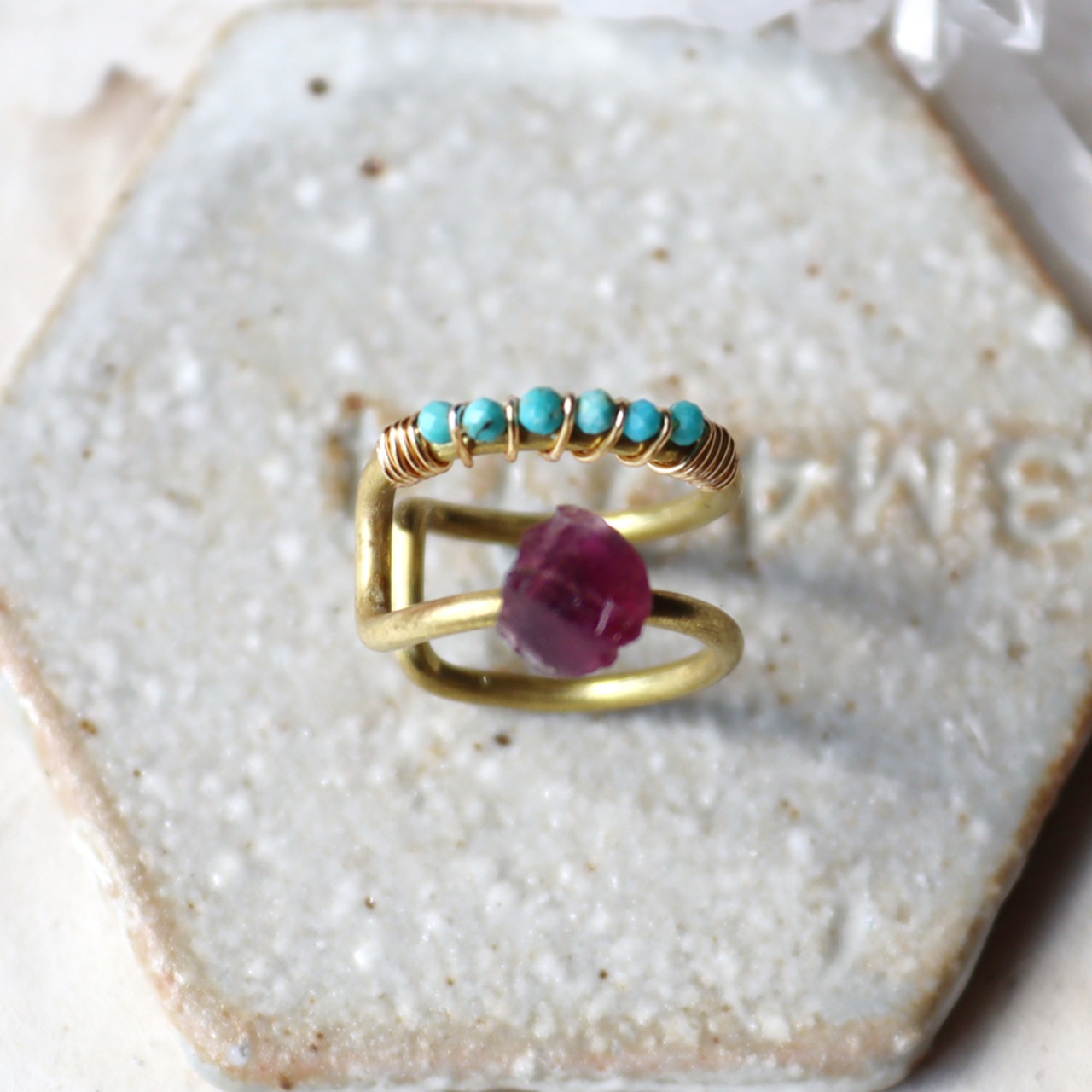 原石は真鍮の4本爪でシンプルに留めます。