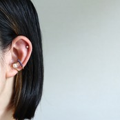 それぞれ色形表情の違う天然石が響き合う、2連のイヤーカフです。