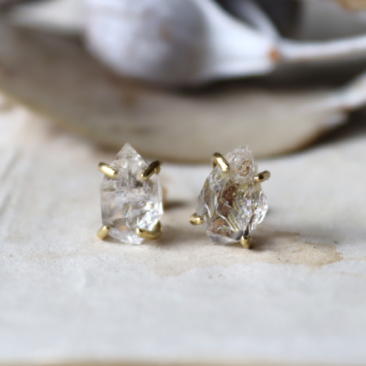 【一点物】大粒原石ダイヤモンドクォーツのピアス