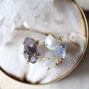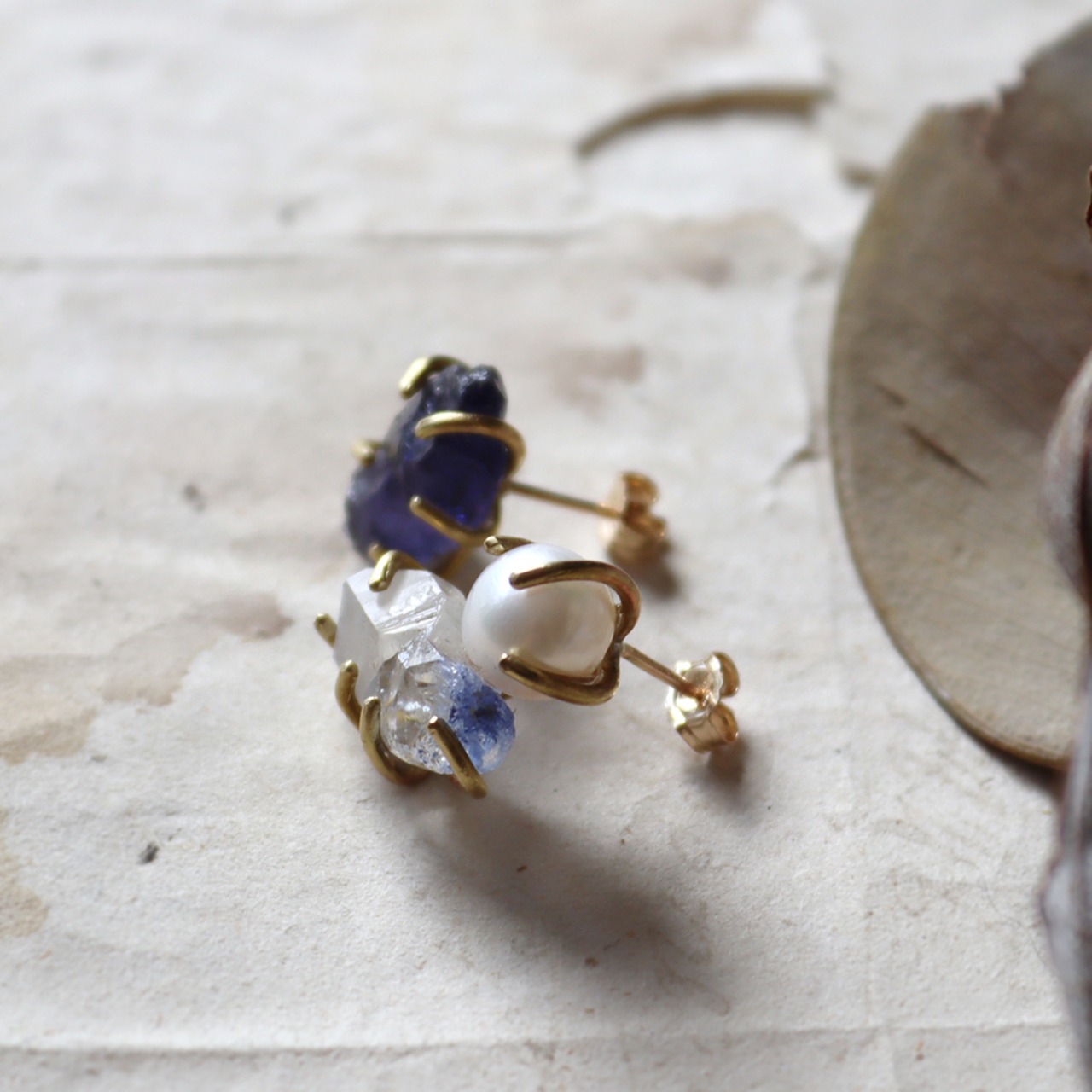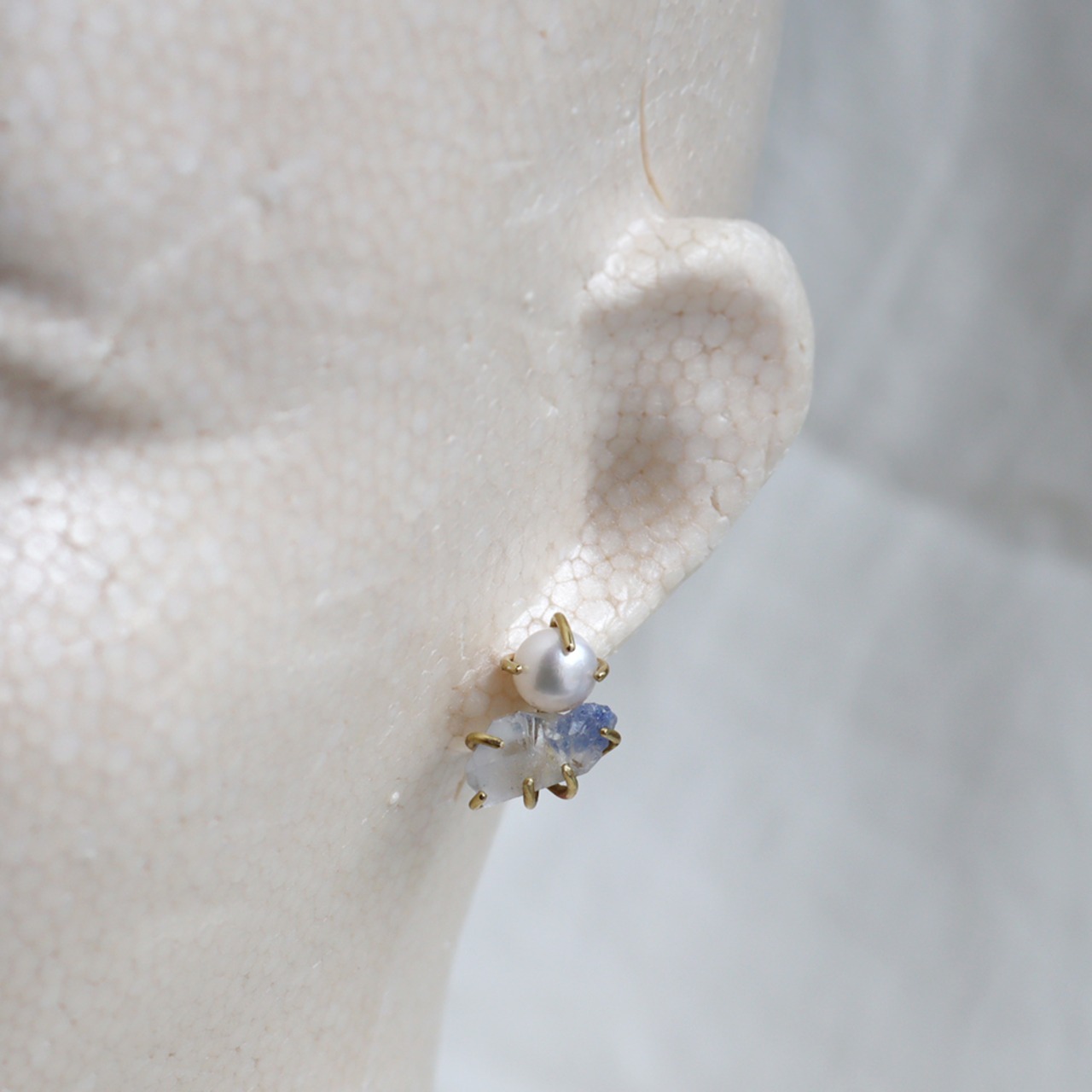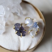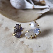 【一点物】原石アイオライト・パール・デュモルチライトインクォーツのピアス