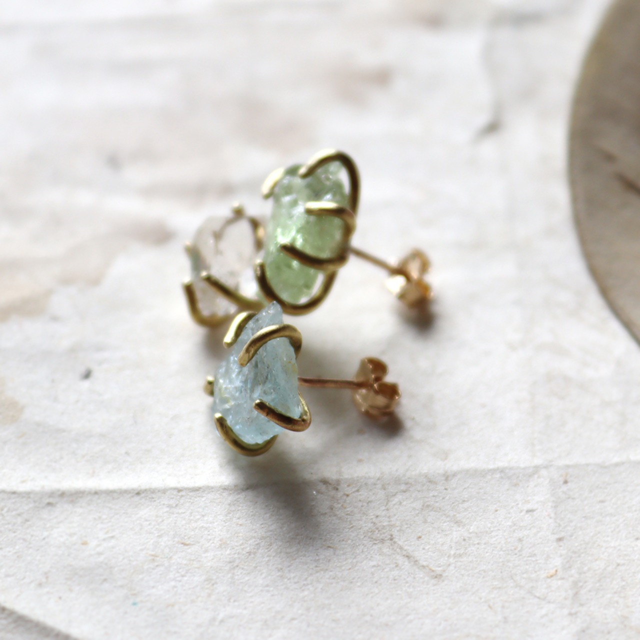 浅瀬の波間のようなアクアマリン、キャンディのような淡いグリーンベリル、凛とした透明感のダイヤモンドクォーツ。