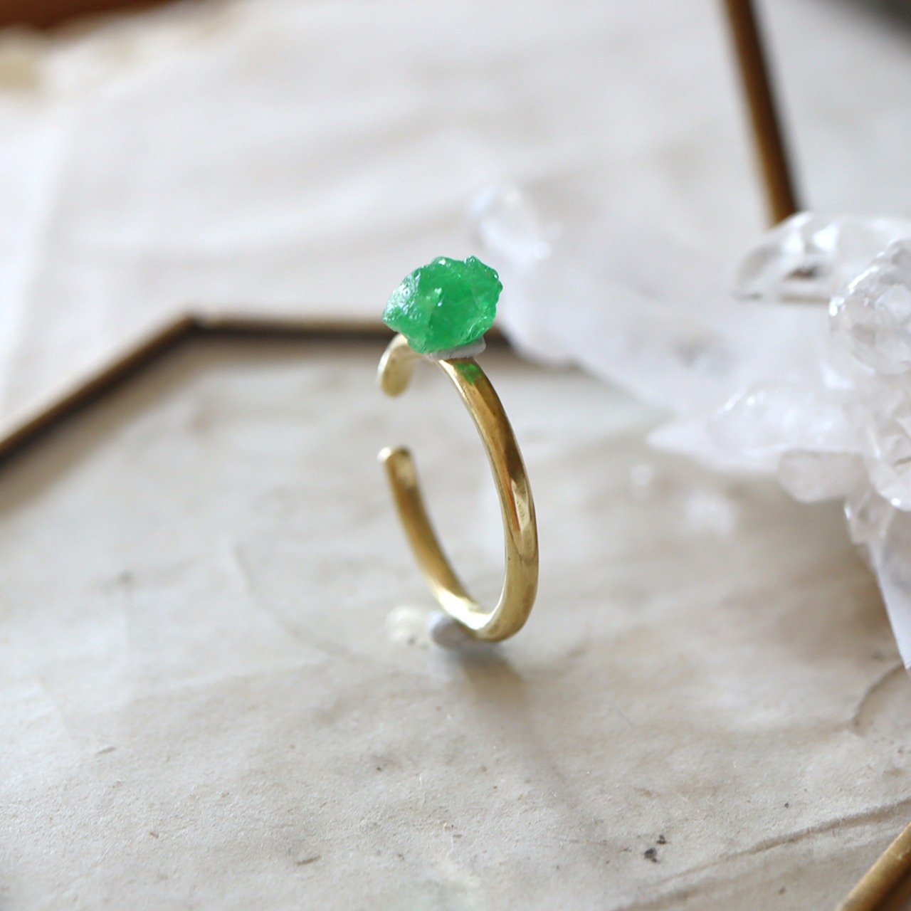原石を真鍮の爪で留めたシンプルなデザインに仕上がります。