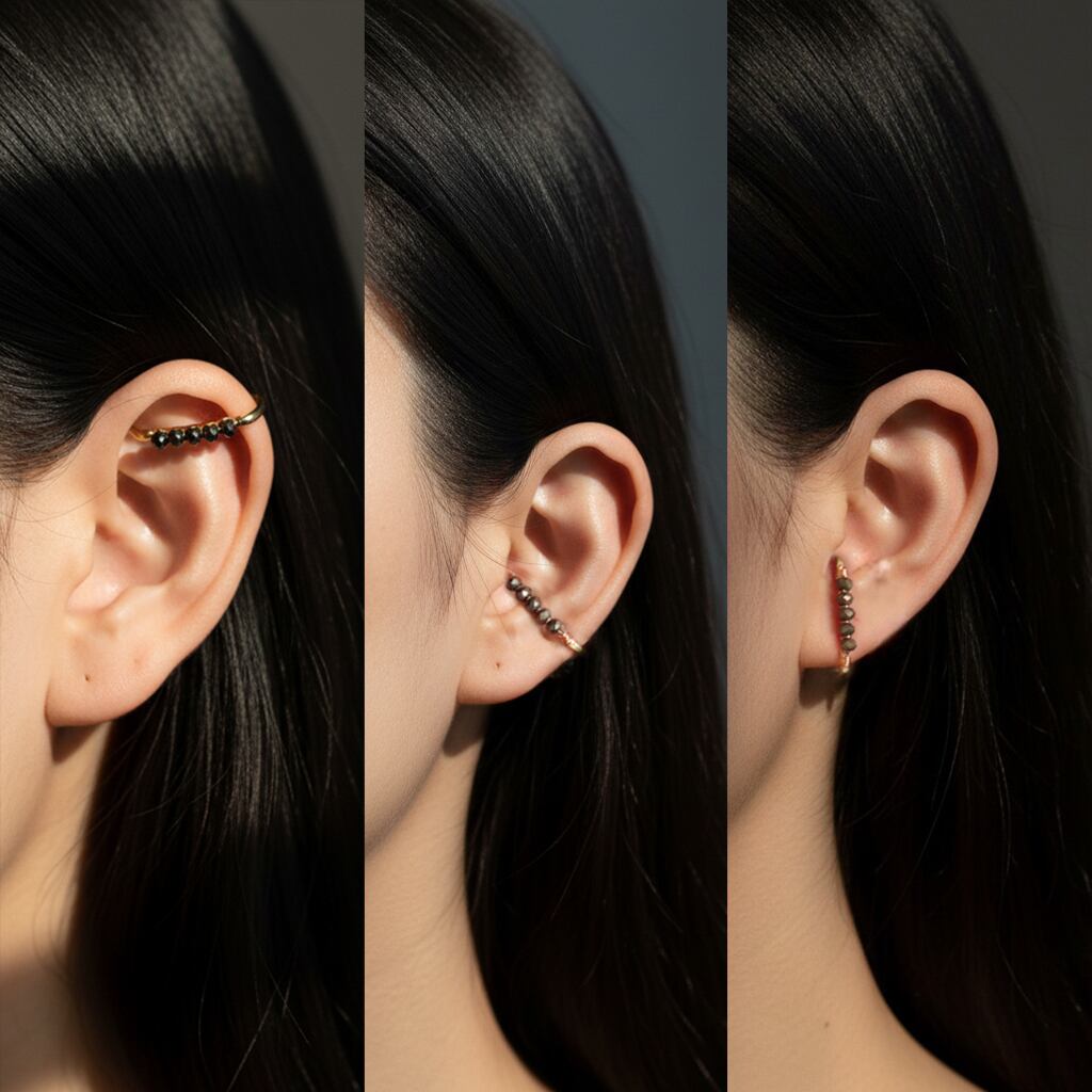 ご自分の耳の形や着けたい場所に合わせて、カフが固定され耳が痛くなりにくいサイズに調整してお使いください。