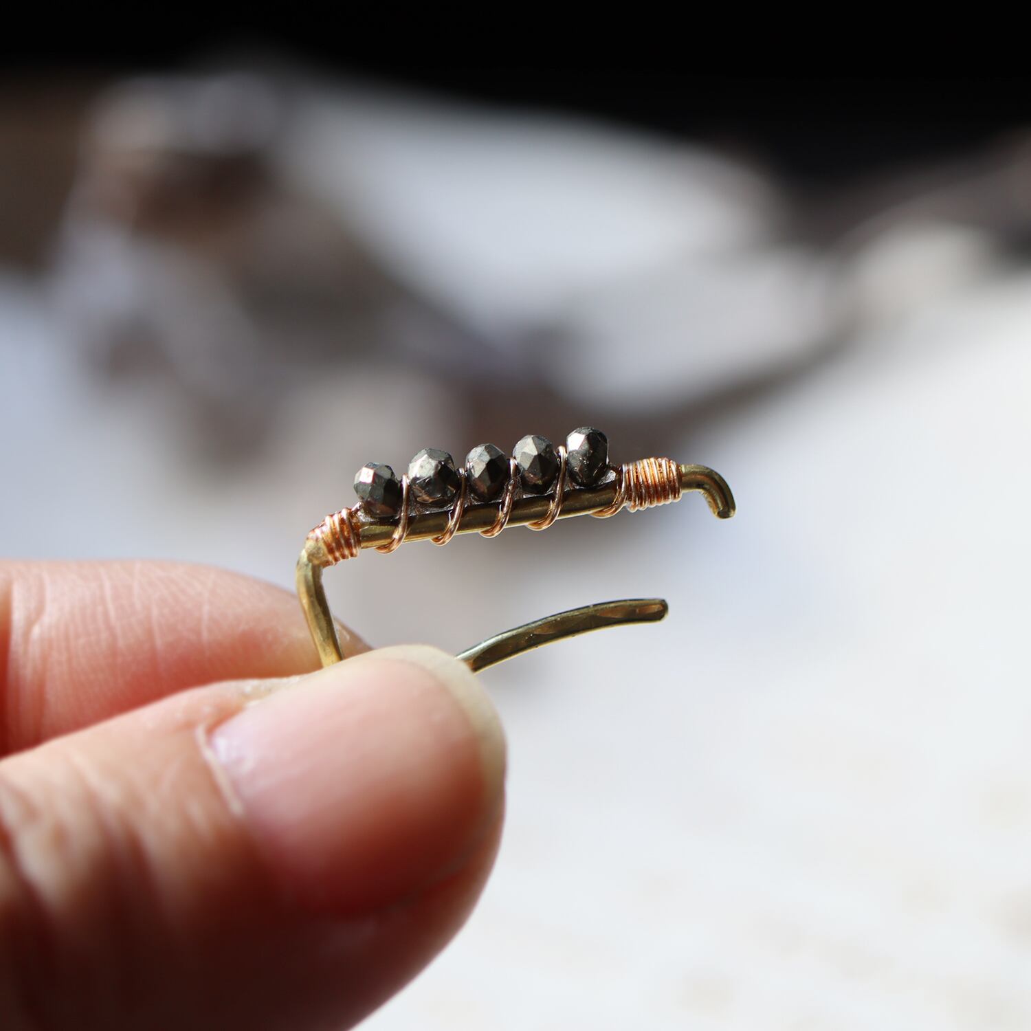 パイライトのイヤーカフ(インダストリアル風)