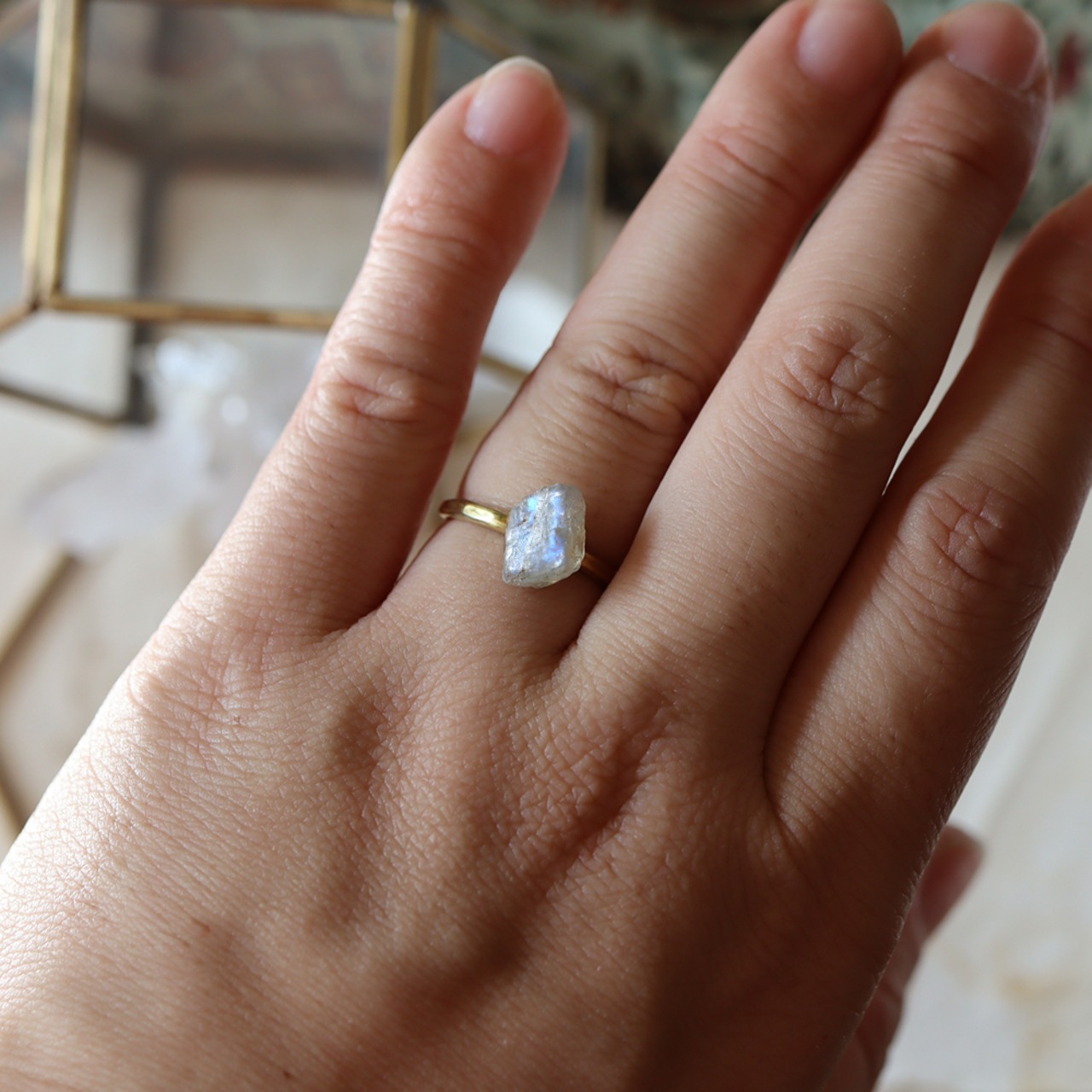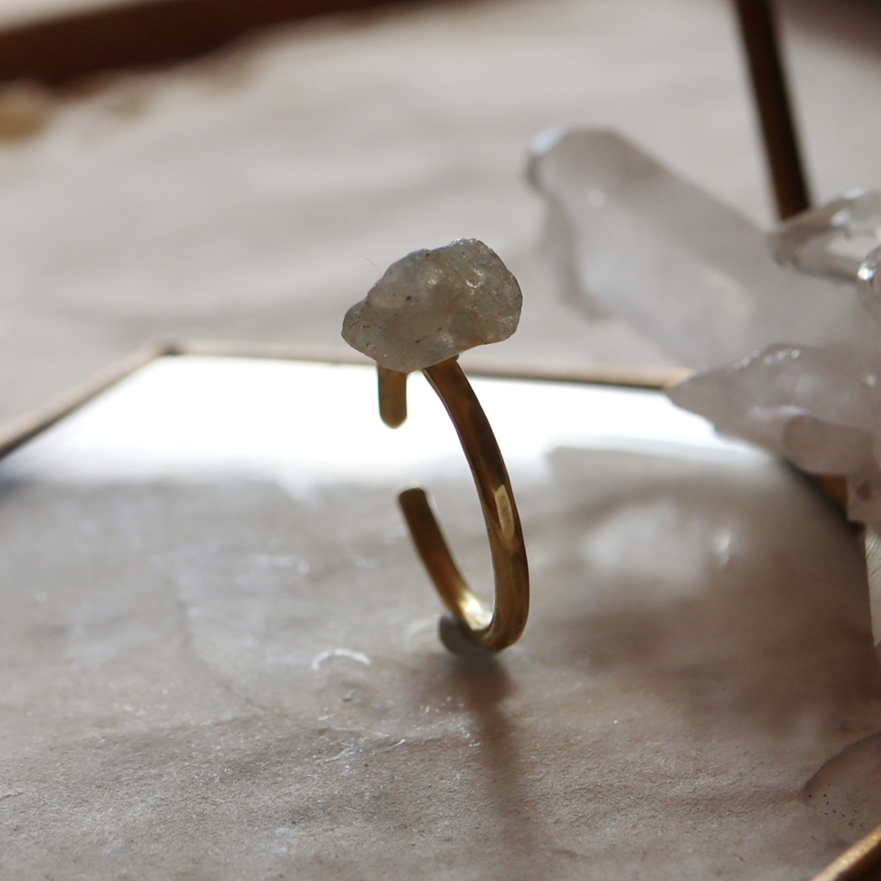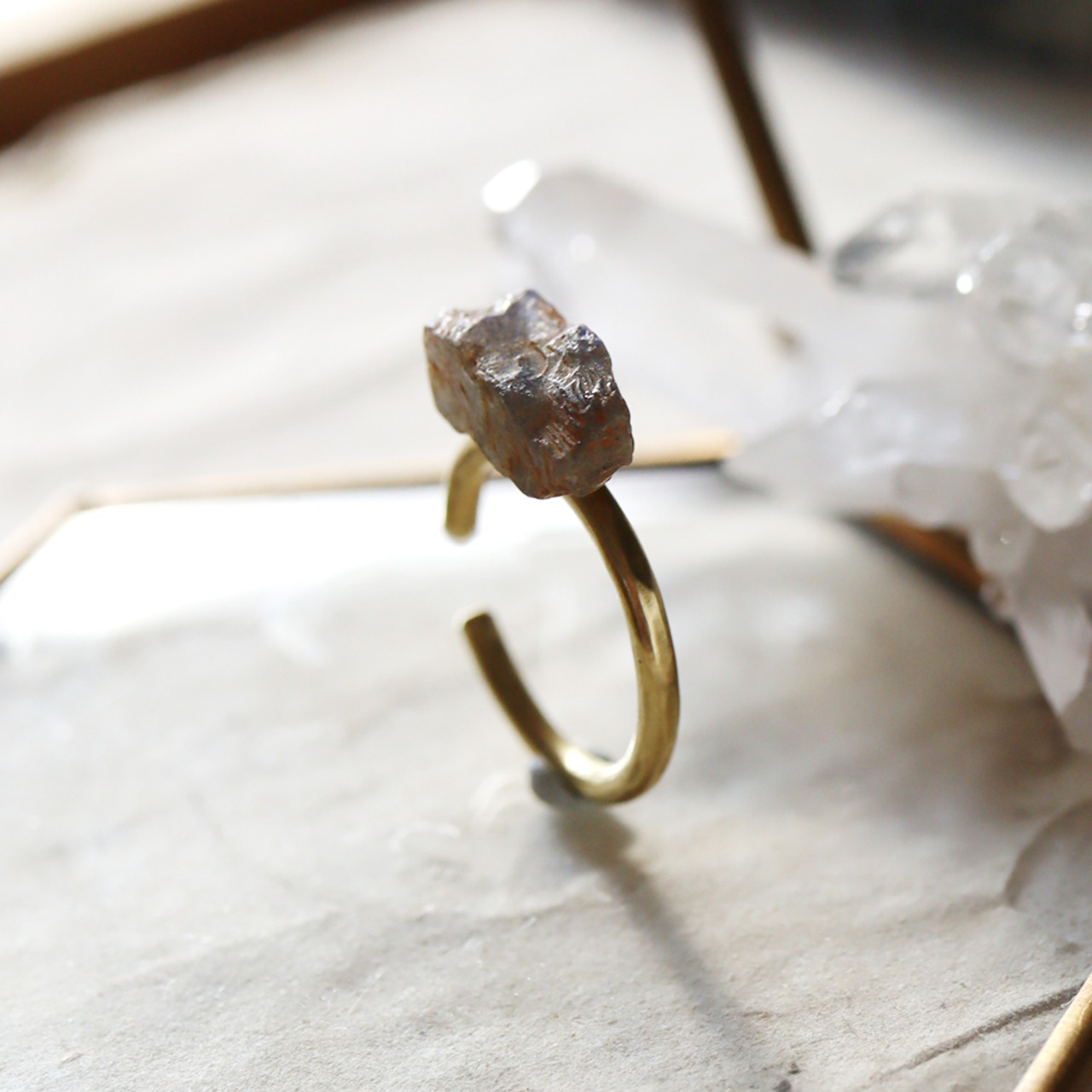 原石を真鍮の爪で留めたシンプルなデザインに仕上がります。