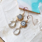個性的な天然石の色形表情が響き合う、ぶら下がりピアスです。