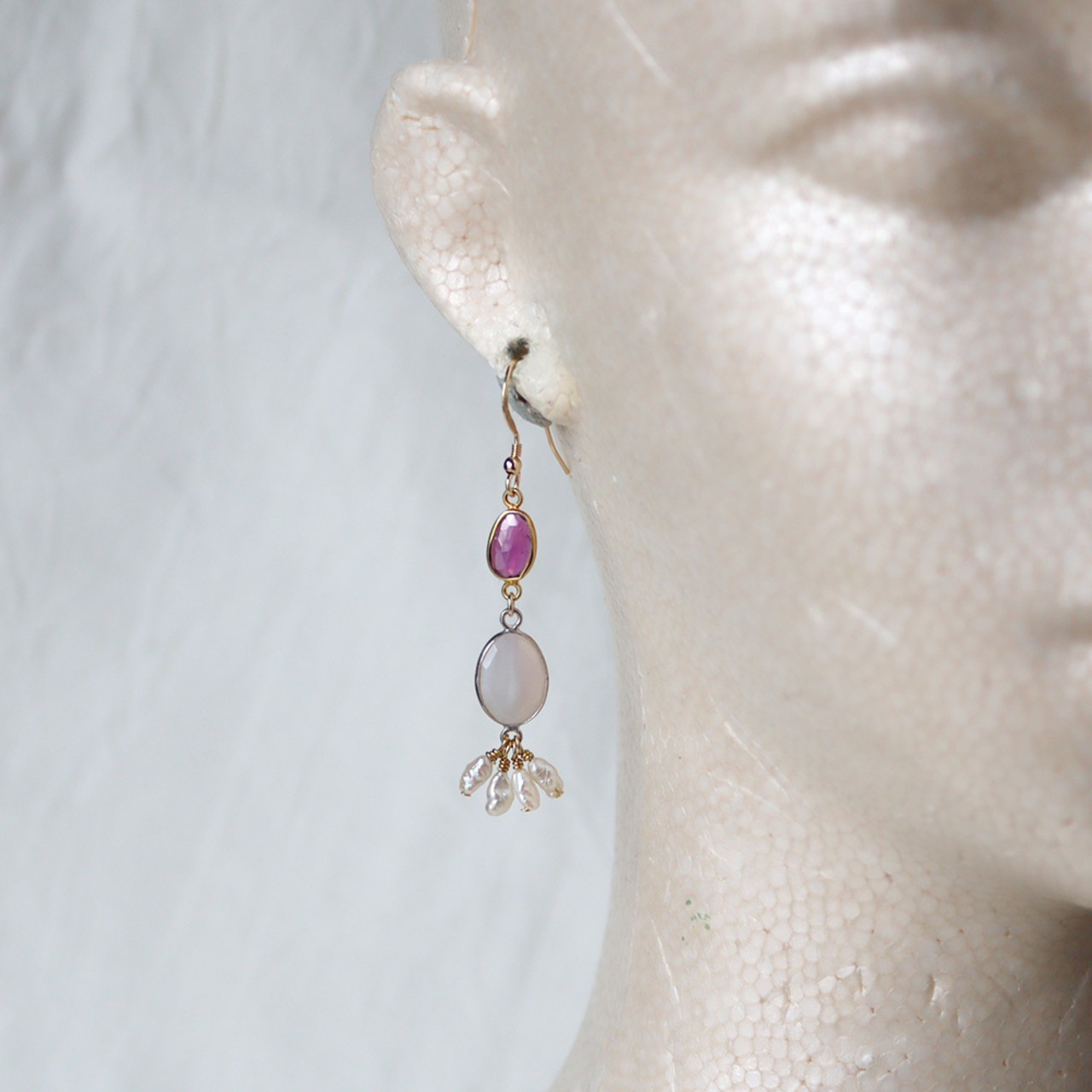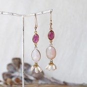 それぞれの天然石の色形表情が響き合う、甘くてどこかエキゾチックなピアスです。