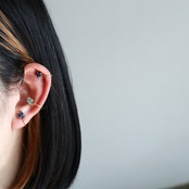耳の薄い部分からノンホールピアスを入れて、着けたい位置へスライドさせます。